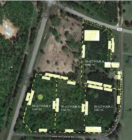 Dream home location alert! Just 11 miles north of Longview in sought after Hallsville ISD, 3.214 Acres on corner lot of FM 449 / Forest Hill Church RD! Are you considering building your dream home? Stop here and check out this beautifully wooded property today! Tract 4 E (see plat photo) Other tracts available.