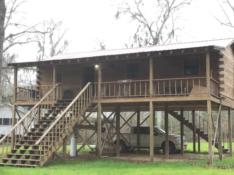 BEST CADDO WATER VIEW without the price of waterfront. Fishermen, Hunters or Weekenders!! Don't let this one slip away. Solid Oak Log cabin built in 2013 with 800 sqft living 400 sqft porch. 2 bedrooms, 2 baths. Fully furnished 2 Queen beds, 2 Camo recliner sofas, stove, refrigerator, microwave, big screen TV and more Beautiful view of Big Cypress Bayou. 2 boat launches near by. Extra lot available.