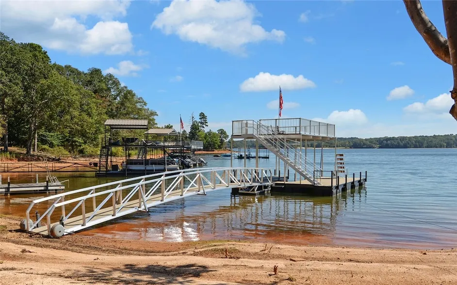 Restricted Dockable Lake Lot on big water, close to marina, wonderful neighborhood, 3 miles to town with NEW aluminum/steel hybrid single-slip double-decker dock in place with beachy waterfront access. This lot is .50 acres with restrictive covenants.