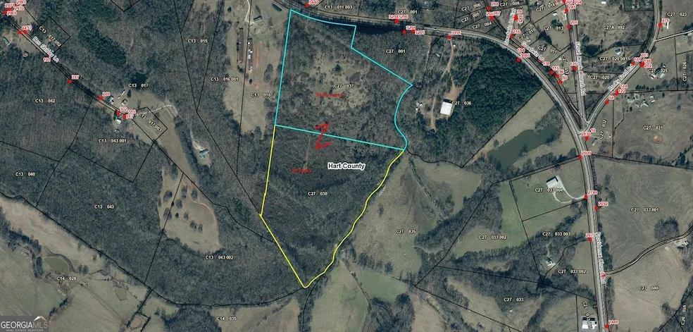 70+/- Acres with an ideal location in Hart County just 1.5 miles to I-85 Exit 177, county water available on Hwy. 77 frontage, bordered by 2500 ' of Shoal Creek frontage, beautiful building sites throughout