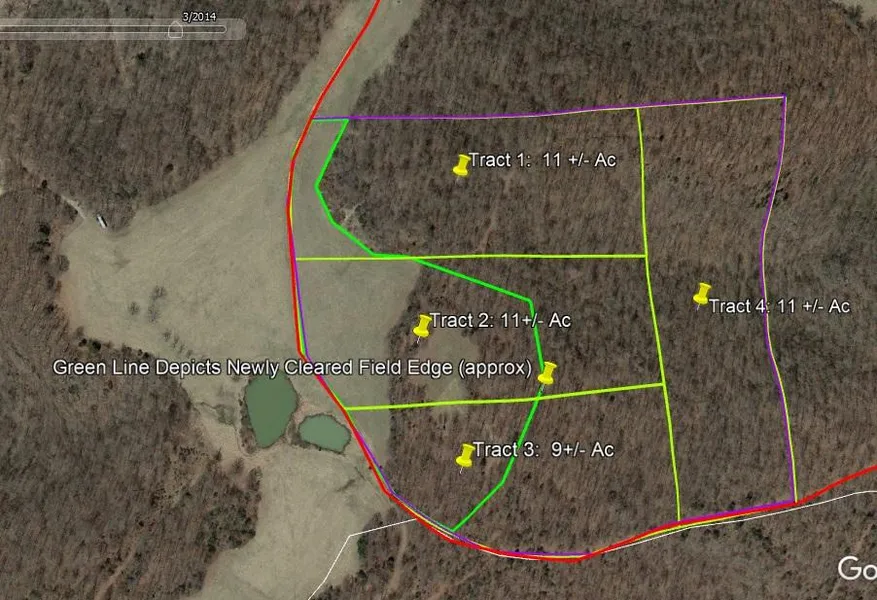 *Fields were enlarged a few years ago on many tracts since aerial photo's were taken, see green line.
