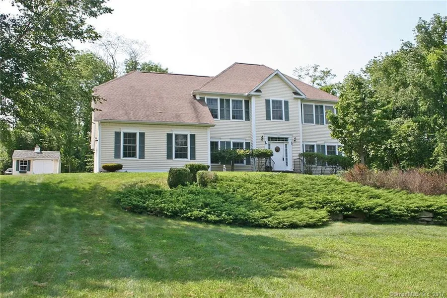 Beautiful hip-roof colonial set well back from the street on a 1.8 acre lot. 3400 sq. ft. of living space plus finished basement adding 1100 sq. ft. of lower living space on the walkout basement level. Many fine upgrades including marble and granite. Hardwood on first floor. Formal living and dining rooms - dining room with wainscot. Family room with fireplace and built in shelves is open to the fabulous kitchen. Eat-in kitchen has informal dining area and an island; Jenn-Air gas oven range; stainless appliances; granite counters; slider to deck. First floor office. Master bedroom has a full bathroom with whirlpool tub, a separate shower room and a walk in closet. Fourth bedroom with walk-in closet is a bonus bedroom over the garage - perfect as a play room, teen space, den or whatever you need. Lower level has 9 ft ceilings and was professionally finished with tall windows and a slider to the side yard; full bath with shower; large storage area. Outside, the yard is very private. Landscaping is lovely. Useful storage shed. Excellent location for commuter access to Rt 2 and for the town beach on Lake Terramuggus.