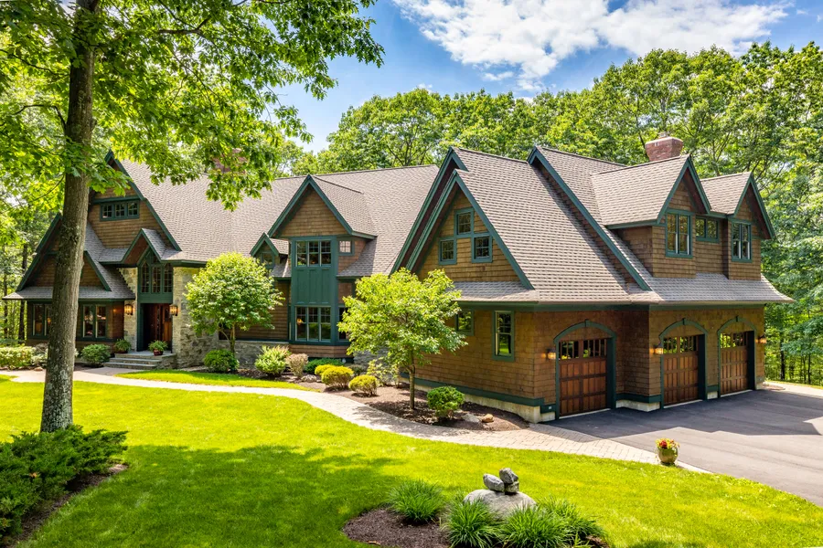 Custom-built in 2003, this Arts & Crafts style home has been a true labor of love in design, construction, and care. Quality and creativity were paramount considerations, as each subcontractor was selected to provide superior results with attention to detail. The result is a home that welcomes you with old world charm, warm wood tones of birch and mahogany, and a stimulating, three-dimensional interplay of single and two-story spaces. A substantial raised hearth fireplace joins the cozy Dining Room to the two-story Family Room. The generous spaces in the large Chef's Kitchen with Viking, Dacor and Sub-zero appliances are perfect for gatherings of family and friends. A private office adjacent to the Kitchen and a spacious, second floor Study Loft address the needs of today's work and learn from home environment. Custom made, Red Birch window and door trim compliment the random width, random length natural birch floors as well as the custom cabinetry and doors. Impeccable detail can be found in the unique patterning of honed marble floor designs found in the foyer, and the many baths. The spacious Master Suite boasts a sitting area with fireplace, spa-like bath, and a generous dressing room. A unique Mud Room includes a spacious "Locker Room" which provides a tidy place to store coats, shoes, and active gear. The expansive finished basement offers windows along the entire western wall opening onto a private patio and covered porch with views and access to the wooded open space.