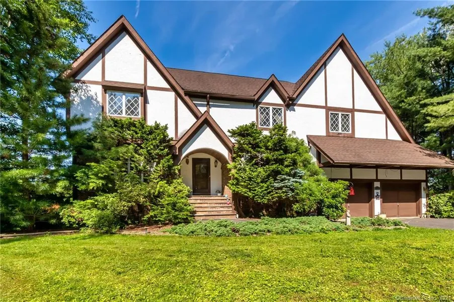 Beautiful Tudor-style home in Avon with direct access to the Farmington River! Over 4,600 square feet of living and entertaining space on four finished levels, including a finished walk-out lower level and finished walk-up attic. Located minutes from downtown Hartford and equidistant from New York City and Boston. This wonderful home offers five bedrooms, four bathrooms, a spectacular in-ground pool, a chef's kitchen, home office, formal living and dining rooms, a huge primary suite, and more! The open first-floor plan features a foyer, office with built-ins, sunken living room with new hardwood floors, a large remodeled kitchen with a large center island, custom cabinets, stainless steel appliances, and stone counters, a formal dining room, and a spacious family room with fireplace. The second floor features five bedrooms and three full baths, including an impressive primary suite with four closets (two are walk-ins) and a huge private bath with two vanities, a whirlpool tub, and a shower. The walk-up attic is partially finished offering wonderful flex space for an additional home office, rec room, or gym. The mostly finished walk-out lower level adds approximately 680 square feet of space with a full bath, access to the third attached garage bay at the rear side of the home, and a slider to the rear patio and patio. This property also features a large deck off the main level, expansive concrete and brick patios, and another deck around the fabulous in-ground pool.