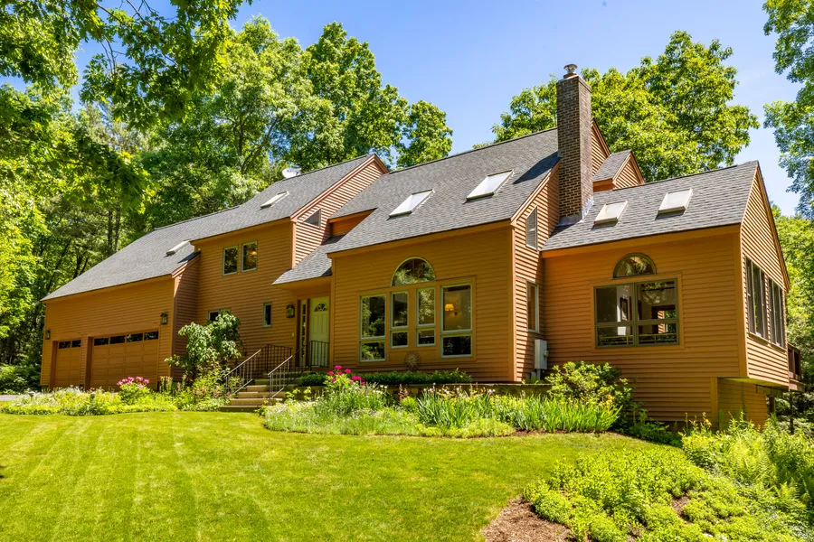 Introducing an extraordinarily well built and sun-filled home with a private setting in Canton, CT. The 4-bedroom home boasts over 3700 sqft of living space and sits on over 3 acres abutting 16 acres of land conservation. Construction includes generous skylights throughout, Decora outlets & switches, aluminum clad windows & doors, 6-panel solid wood interior doors, intercom, audio, central vac, 200 Amp electrical service with dual 100 Amp sub-panels, an open 3-car steel beam constructed garage with EV plug-in, mud room entry with laundry room, finished walk-out lower level, vaulted ceiling sunken living room with Juliet balcony, gorgeous sunroom, expansive rear deck, and a large primary bedroom suite with whirlpool bath, walk-in & cedar closets, and private balcony overlooking a pristine stream and nature preserve. Throughout the home you find locally controlled radiant wall mounted heat that supplements the hot water baseboard, giving each space its own hybrid heat control. Recent upgrades include newer appliances and granite countertops in the propane cooktop kitchen, interior & exterior paint, asphalt shingle roof, Weil McClain boiler, and newly paved driveway. Located in one of the most beautiful areas of CT, the home is near outdoor activities such as hiking, biking, skiing, kayaking, tubing, as well as near area amenities including shopping, medical facilities, and highly rated schools. ALL OFFERS DUE BY 2PM TUESDAY, JUNE 14TH.