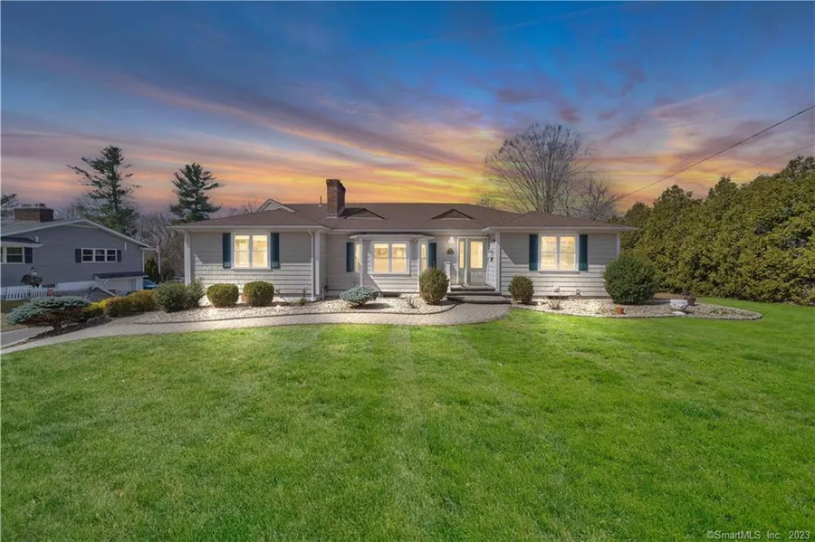 Don't miss this spacious ranch on 1.91 acres, conveniently located in the heart of Enfield. So much potential! The large living room with built-ins and fireplace opens to the oversized dining room with a big bay window. Wood floors and recessed lighting throughout. The dining room flows nicely into the kitchen with tile floors, white cabinets and granite countertops. 2 generous bedrooms and full bathroom, along with an expansive primary suite with full attached bath finish up the main level. The basement affords you over 800 additional sq ft of living space, with tons of storage, pellet stove, half bathroom and large wet bar. The basement has a walk-out with its own private entrance. So many different ways this space can be used! The large backyard has a covered patio, large shed and beautiful pergola. One car attached garage and one car detached garage. This home also boasts central air, heater in garage, and an irrigation system. Driveway is shared. Home being sold As-Is. Some photos have been digitally enhanced or virtually staged. Book your showing today!