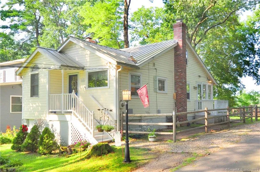 Tucked away in a quiet neighborhood you will find this truly charming storybook lakehouse set on Secret Lake in Avon! This sweet bungalow was built in 1930 with frontage and views on Secret Lake. It is situated on a gently sloping lot to capture the view. Enter into the sunfilled, white kitchen hardwood floor, beams and vaulted ceiling. Get cozy in the livingroom and enjoy the woodburning stove on chilly nights! A small first floor bedroom is currently used as an office and the main bathroom has been remodeled with vaulted ceiling and skylight. Sit in the sunporch which spans the back of the house to enjoy peaceful afternoons or grab your kayaks and make the short walk to the path to the lake access. The primary bedroom is on the second floor. Fish, paddleboard, canoe or hike the Secret Lake area or enjoy shopping and restaurants nearby. There is no direct access to the water from the property due to protected wetlands and steep drop but the access is at the end of the road as a path at the corner of Arbor. Don't miss this one! It even has central air and public utilities! Sale is contingent on buyers finding home of their choice. Actively looking.