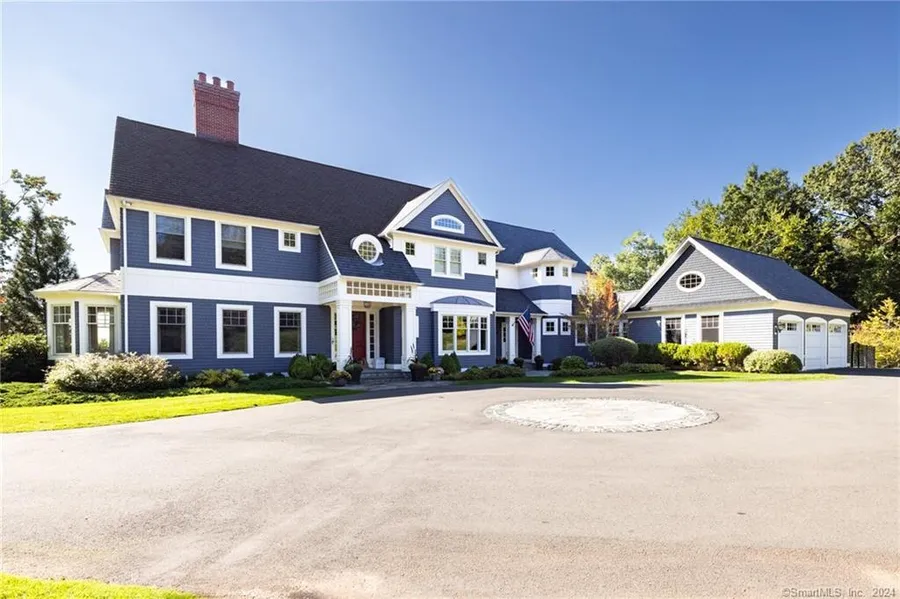Indulge in breathtaking sunsets and panoramic vistas from nearly every room in this peaceful,yet opulent custom-built shingle style colonial home. Relax in a newly enhanced beautiful setting with elaborate landscaping,serene surroundings,sweeping lawns or a flowing waterfall.Meticulously updated with all modern amenities with a relaxed yet elegant style.No expense was spared in the home,from the state-of-the-art kitchen,updated baths,modern lighting, timeless masterfully crafted millwork to elaborate gardens,plantings and specimen trees.Plenty of abundant natural light.Designed for comfort and sharing time with family,this home offers exceptional amenities such as a spacious walk-in closet in the PBR suite with barrel ceiling,FP and stylishly appointed dual sinks with a soaking tub,a paneled 1st-floor office.4 fireplaces,4 add'l BRs,3 en-suite.Ample space for guests to entertain effortlessly in the open kitchen-family room with seamless flow for intimate gatherings.Outside,enjoy a resort-like private oasis with a gunite pool,hot tub, pool house, outdoor TV, stone patio and alfresco dining area with an outdoor cooking station and fireplace.A 3-car garage and generator ensure practicality and peace of mind.For wellness, a custom gym awaits on the lower level.New hand-crafted stone walls and sweeping lawns complete the beauty of this luxurious residence.Nestled on 2.69 acres at the end of a cul-de-sac, ten minutes from WHC amenities, highways and Avon center.