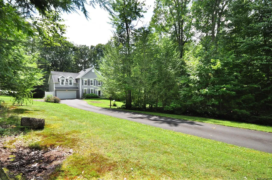 Set back from the road, this stunning property offers privacy and exceptional curb appeal on sprawling 1.17-acres. This beautifully maintained home welcomes you with a bright and sunny interior, highlighted by neutral decor and hardwood floors throughout. The heart of the home is the spacious kitchen, featuring granite countertops, an oversized center island with ample storage, and modern appliances, perfect for family and entertaining. The adjoining family room is cozy and inviting, with built-in shelving and gas fireplace adding warmth and charm to the space. Both the dining room and living room are enhanced by elegant French doors, creating a seamless flow for entertaining. Upstairs, the generous sized primary bedroom is a true retreat, complete with full bath and custom walk-in closet designed for convenience and style. 3 additional bedrooms share a beautifully updated full bath, pro...