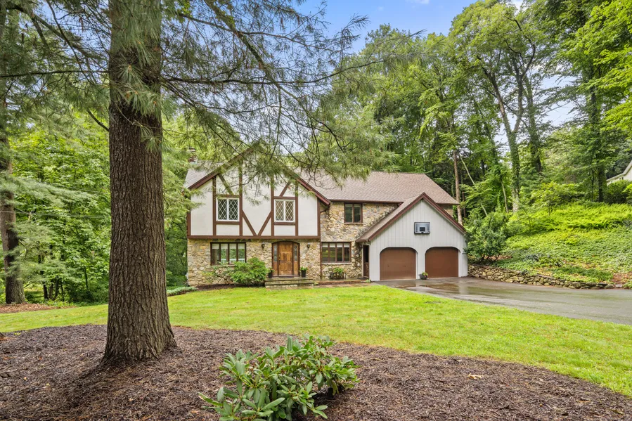 This charming, well-maintained colonial home is perfectly situated for convenient highway access. The home boasts generously-sized rooms, making it feel much larger than its 2,450 above-grade square feet. The large, remodeled, eat-in kitchen with new shaker cabinets, stainless appliances & abundant granite countertop space is perfect for meal preparation. The adjacent dining room, with its oversized window & wood floors, creates a warm & memorable setting for special occasion meals. The front to back living room includes a classic brick fireplace, refinished wood floors, large windows & a slider with deck access making it an ideal venue for entertaining. Conveniently located near the powder room and laundry area, the mud room entrance from the deck adds practicality to the home. In addition to the primary bedroom with huge bathroom containing a garden tub & stand-up shower, there 3 oversized bedrooms & remodeled 2nd full bath. A unique feature of this home is the 16' x 21' room with vaulted ceilings & private exterior entrance as well as access from the 2nd floor. This versatile room can be used as a private home office, media room or extra space for family gatherings. An added bonus is in the cozy, walkout lower level family room with impressive stone fireplace & accessible 3rd full bathroom. A tranquil and secluded rear yard awaits, offering the perfect backdrop for creating cherished memories.