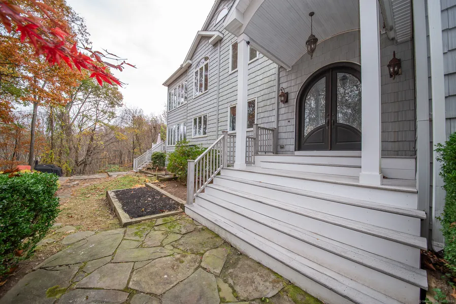 This gorgeous contemporary is situated on 2 acres of privacy. This chef's Kitchen will wow you with custom cabinetry, imported Brazilian marble countertops, and a massive island for entertaining that opens to a living room with a gas fireplace and 9-foot ceilings. This home boasts two master suites, one on the first and second floors, massive custom-tiled bathrooms, double sinks, a 7x10 walk-in closet, and Bidets. There are four-season sunrooms 23x13.5 on the first and second floors, with views of the conservation land that abuts your property. One is off of the possible inlaw set up on the second floor that boasts a full kitchen and separate entrance that is 23x21 with 30ft ceilings, paddle fans, exposed beams with a walk-in closet, and a vast custom 21x8 ft tiled rain shower, double sinks, and Bidet. Need more space? There is a tiled walk-out basement with a bedroom, full bath, and an additional living room with a dry sauna and two-car garage. Imagine the peacefulness of relaxing on your Trex deck, listening to nothing but nature. Serenity Awaits!