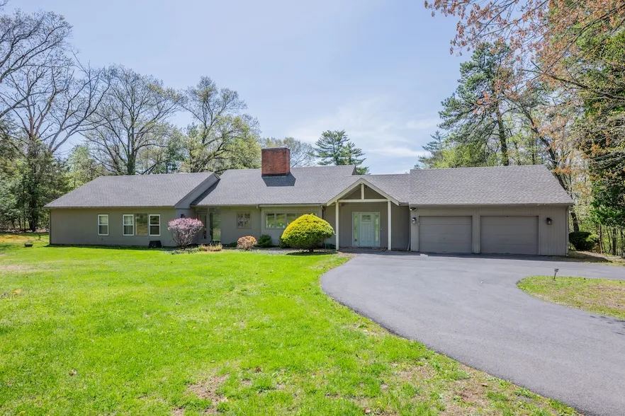 Discover a rare opportunity to own almost 3 acres on the desirable east side of Farmington. This exceptional accessible property offers true one-level living. Seamlessly blending with its surroundings, the home features a stunning wall of windows that flood the interior with natural light. The thoughtfully designed layout includes a private three-room in-law suite with a separate entrance, featuring a kitchenette, cozy living room (or potential fifth bedroom) with a wood stove, a bedroom, and a full attached bath-perfect for multi-generational living or guests. Pass through the updated kitchen and inviting family room with a wood-burning FP to reach the main bedroom wing, where you'll find 3 bedrooms, including a primary suite w/ an ensuite bath and a walk-in closet. Vaulted ceilings and picturesque views from every room enhance the home's welcoming feel. Located in the award-winning Farmington Public School System (East Farms district) this property offers the perfect balance of privacy and convenience, just minutes from highways, shopping, UConn Health, WH Center and 2 hours from Boston or NY. Significant recent upgrades include a newer roof and furnace, offer peace of mind for years to come. The expansive attic invites finishing potential w/o the need to raise the roof. Fall in love with this one-of-a-kind, accessible retreat today. Please do NOT walk the property without an appointment.
