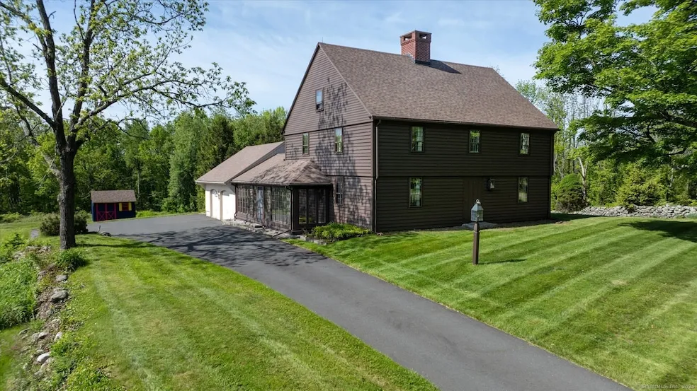 The Old Brockway House Built by Edward Brockway, who in 1799 was one of the first residents of Hartland to leave New England for the fertile plains of Ohio, the 19th-century American equivalent of the Promised Land! This rare old "primitive" colonial appears to qualify as what many historians consider a "First Period" house. Built decades before the American Revolution, it contains many elements of a home erected closer to the 17th century than the 19th. It is located on a dead-end street with Tunxis State Forest abutting on 3 sides. Tunxis State Forest is approximately 9,152 acres divided into sections on both sides of the Barkhamsted Reservoir. It contains large areas of unbroken forest in the town of Hartland and other neighboring towns. The house design is classic early American, featuring a central chimney, multiple hearths in each first-floor room, a narrow winding staircase from the entry hall to the upper story, and built-in corner cupboards with shaped shelves. The floors include both wide hardwood and softwood boards. All the interior doors are board-and-batten style, using feathered-edge paneling and either Suffolk or Norfolk latches. Much of the first-floor ceiling consists of rough, adze-cut exposed posts and beams, including magnificent summer beams. In some rooms, the floorboards from the room above are visible, still bearing old saw marks from a vertical up-and-down saw blade. Architectural elements include cantilevered floors on both the second story