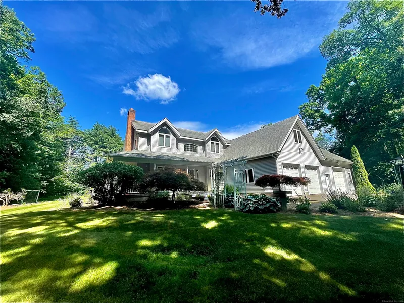 Fantastic location for those seeking privacy, nature, and dark sky gazing yet still in a neighborhood and less than 10 min away from town amenities. This gorgeous colonial with 3600 sq ft of living space is nestled on 1.15 acres at the end of a culdesac bordering town owned property and boasts two wrap around porches the expansive back deck covered with a new 8 person hot tub, and nearby is the peaceful and serene koi pond. Special features include remodeled kitchen with quartzite, large island soft close cabinets, gas range, walk in pantry and hardwood floors. 3+ car gar, 1 bay can accommodate large vehicles and toys. There is a front to back living room with stone fireplace, formal dining room and a half bath on the first floor as well. Upstairs the spacious primary bedroom has new carpeting and roomy bath with whirlpool, shower and dual sinks. On this floor you will also find 2 bedrooms and an additional room with hardwood floors and a cathedral ceiling, as well as the laundry area. In the finished lower level, there is a family room a full bath and 2 separate rooms currently used as bedrooms. This area is perfect for visiting guests or if you have a multigenerational situation. Central air on the second floor and a mini split cools the first floor. Outside there is a large private flat lawn, rock walls on the property and woods nearby to explore.