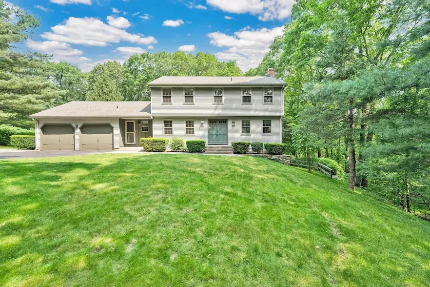 Experience the perfect blend of charm and modernity in this exquisite traditional colonial, located on a serene dead-end street. Pride of ownership shines throughout this meticulously maintained home. Step inside to a spacious foyer leading to a generous living room featuring a cozy gas fireplace and a large picture window that frames your private backyard. The elegant formal dining room includes a built-in corner hutch, perfect for entertaining. The remodeled eat-in kitchen is a highlight, boasting gleaming appliances, stylish cabinetry, and two pantries, all enhanced by a bright picture window. A convenient mudroom offers access to the garage and laundry, while a dedicated hallway office provides built-in desks and great functionality. The rustic den, with cathedral ceilings and a stunning reproduction Mason fireplace, connects to a covered deck and a large sun deck for summer enjoyment. Upstairs, the tranquil primary suite features a remodeled bath, accompanied by three additional bedrooms, all with built-in desks and shelves, along with a walk-up floored attic for extra storage. The basement includes double back doors and updated mechanicals for peace of mind. Nestled on over an acre, this property provides privacy adorned with lush landscaping and a two-car garage with built-in storage. Don't miss the chance to make this exceptional home yours!