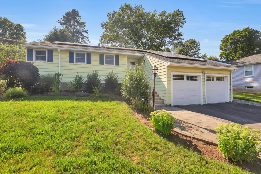 Welcome to this inviting 3-bedroom, 1.5-bath ranch offering comfort, style, and modern updates. Just off the entry, the dining room leads into a spacious living room with a cozy fireplace and a large bay window that fills the space with natural light. An eat-in area precedes the large kitchen, which features granite countertops, stainless steel appliances, and ample cabinetry. An all-season sunroom overlooks the private backyard, complete with a deck-perfect for relaxing or entertaining. The finished basement provides versatile space with endless possibilities. Additional highlights include a remodeled full bathroom, newer roof, all new windows, a new solar panel system for energy efficiency, and a 2-car garage. Move-in ready and full of charm, this home blends comfort with convenience.