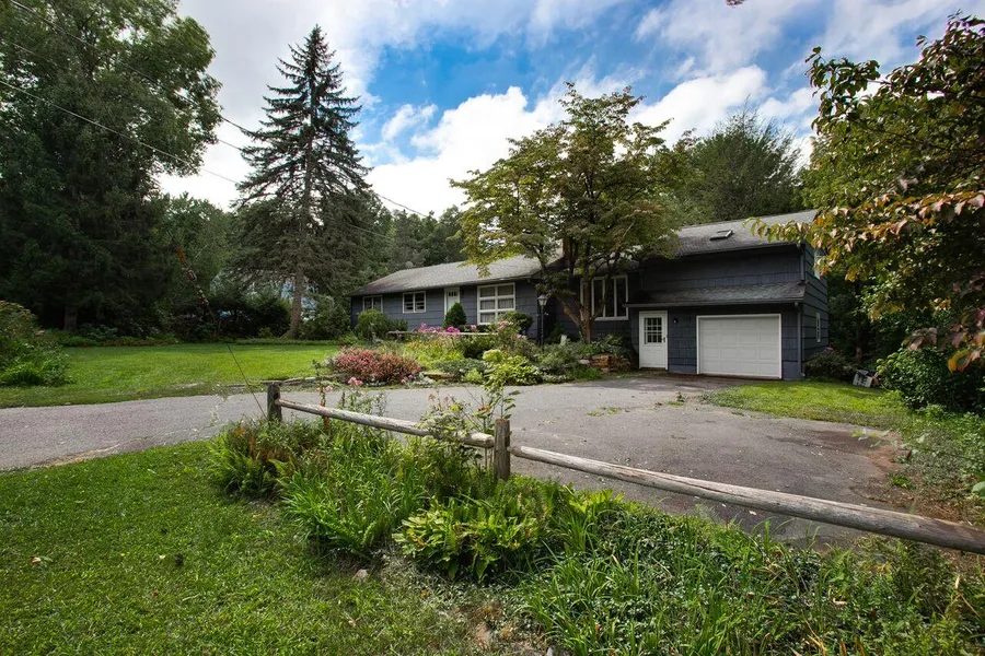 Affordable 3/4 bedroom 2 bath home on spacious 2.4 acre lot offering classic period features, hardwood floors, built ins, woodstove w/lined chimney at the fireplace, skylights, tile backsplash, great floor plan for entertaining; eat in kitchen PLUS A HUGE FORMAL DINING ROOM, studio loft over the garage, additional rooms in the finished lower level are not counted in the square footage, in law apartment potential, town water & brand new septic tank 2016, 3 heat zones (downstairs level has it's own) acreage in back leads down across perennial stream, rises to a high level plateau area in back with hiking trail, customary home occupation/businesses allowed, 18 minutes to Hartford, close to Minnechaug Country Club, easy highway access, greenhouse in need of repair ready to be revitalized. Property tax is based on town's present appraised value of $262,200 (assessment is 70% of value statewide in CT).