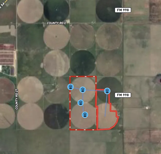 This property has 2 circles in Hartley County. Approximately 320 acres and is supported by 5 wells.