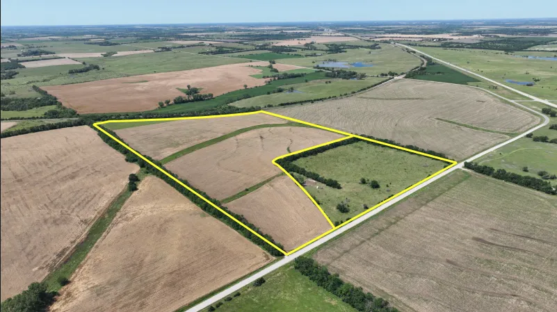 69.77 acres selling at multi-parcel auction in two tracts in NE Harvey County, KS. Tract 1 features 15.4 acres of fenced pasture with a small pond, windmill (currently not in use), and surrounded by trees. With paved frontage and just 0.5 miles off Hwy 50, this property is ideal for a homesite or continued livestock use. Tract 2 includes 54.3 acres of rolling cultivated ground, perfect for ag production or future development. Conveniently located just 30 minutes from NE Wichita on Greenwich Rd, 17 minutes straight south of Hillsboro, 15 minutes from Newton, and eight minutes from Peabody.