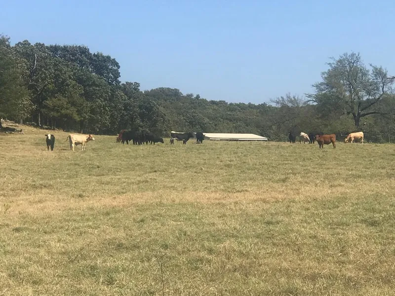 COVER: Estimate 75%+ open for pasture and hay meadows. Grasses are a mixture of bermuda, clovers, and native. Owner estimates typical carrying capacity of 125-150 animal units.