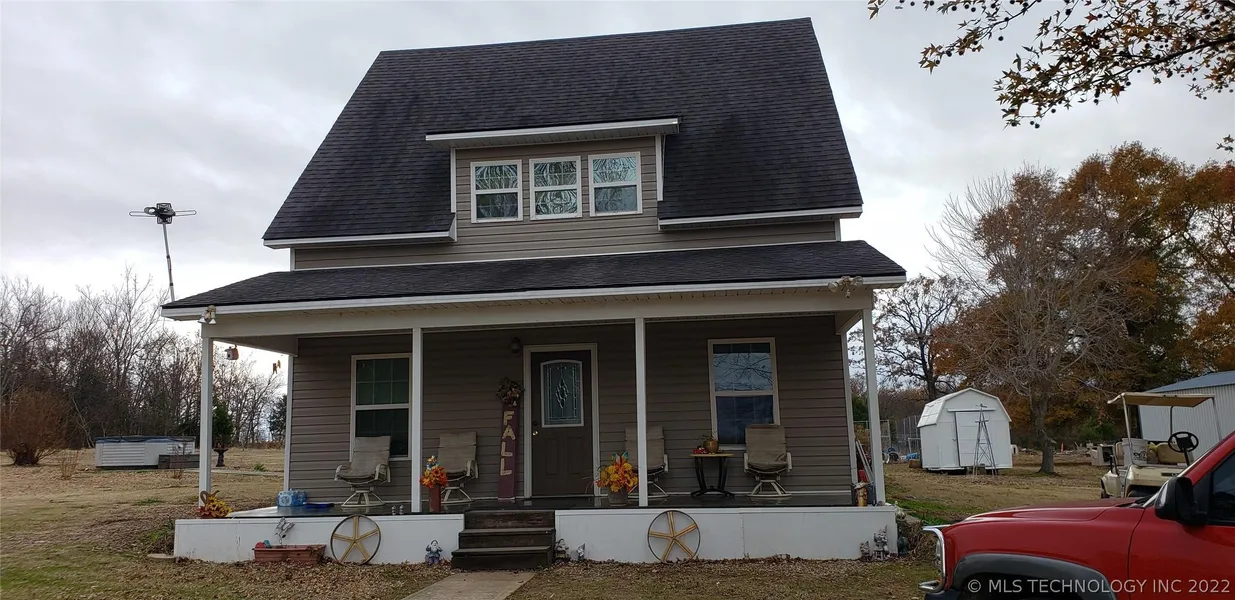 Country Charmer on 20 Acres of scenic beautiful land in Keota, Oklahoma. 2013 Built Home on flat useable 20 acres, perfect for livestock and a pond. 3 bedroom and 3 bathroom two story home with country porch. House sits back off paved road for that perfect view and curb appeal. Builder/ Home owner built home in 2013 extra foam insulation in walls and attic for energy efficiency for cooling/heating. Large Downstairs master bedroom/ bathroom w/ walk-in closet. Guest bedrooms upstairs w/walk-in closets and separate bath. Open Loft area for gaming room or loft/ possible bedroom area. Property offers several shops 1 Large Metal Shop 20x40 with 12 ft clearance roll off door. Another shop with concrete floor water, electricity/hot water heater 16x50. Perfect for dogs or inside greenhouse. (12x20 insulated building w/water electricity has (2) 6 ft overhangs) (Smaller 12x10 shed doesn't stay). Cl...