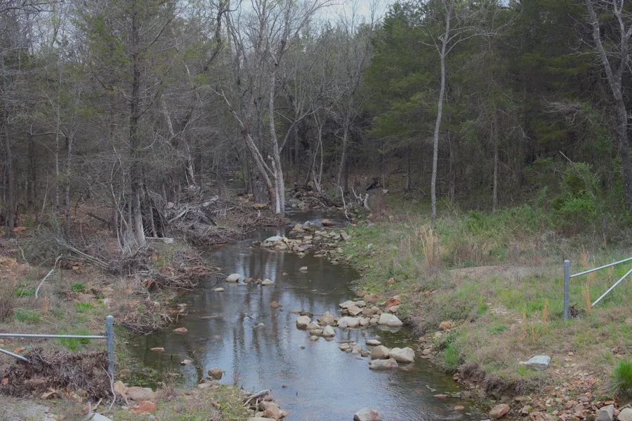 This quiet 28-acre property is ready for a home site or cabin. The terrain is gently rolling, and the timber is mostly hardwoods & native trees with clean ground cover and spacing excellent for hunting & exploring! The entire north and west borders boast a year-round creek with some flat access as well as ridge line views perfect for fishing and water play. Along the southern border, there are 2 entrances to the property, one gated and one open with a newly installed gravel driveway, along with a new paved county road. Approximately 10 acres in the center of the property has been recently cleared (not reflecting on satellite maps yet) but is surrounded by timber, creating a quiet serene private area for a home or cabin site, where the running creak can be heard from the porch of your future home. The land has been recently surveyed with electric on site and county water is located 1/8...