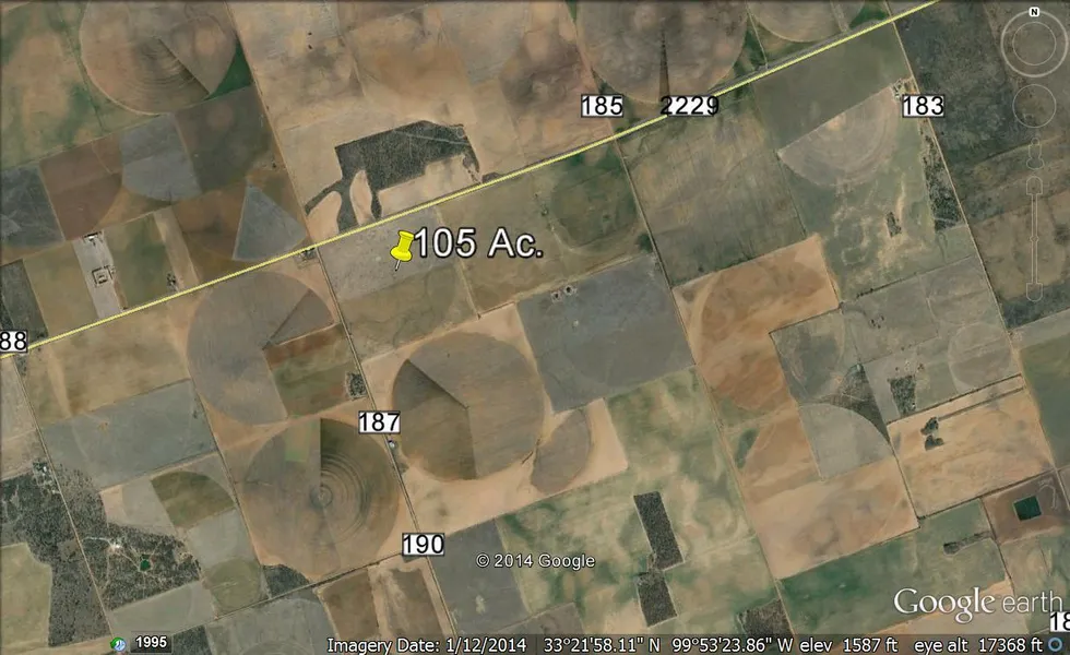 Just west of OBrien this 105 acres has good 5-wire barbed wire fences, two wells, a center pivot and is easily accessible. Located on the corner of CR 187 and FM 2229 the property is well located and would make the perfect addition to your farm or ranching operation. ($1,200/ac)