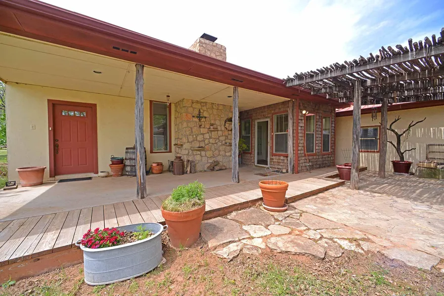 Landscaping- Property has been completely landscaped with pecan trees, native wildflowers, fruit trees, and shrubs. Landscaping also includes large limestone rocks, pergola porch, arbor and more. Pecan trees have been very productive in the past.