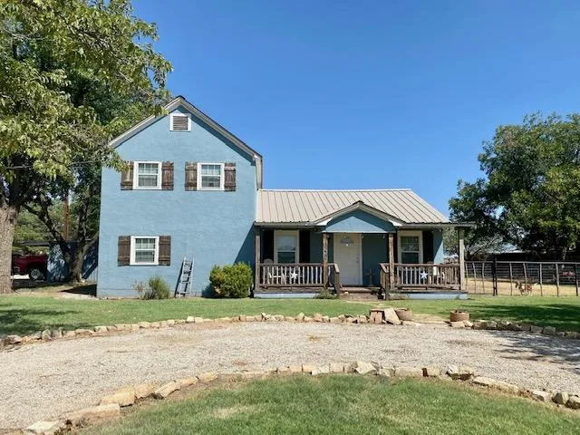 Don't miss out on this one of a kind, rare find in Haskell Texas! This adorable two story, family friendly home has all you could want. For starters this 3 bedroom,2 bath home has recently been updated to include: bathrooms, kitchen, windows, original hardwood flooring, interior paint, electrical and plumbing. Throughout the home you will find stylish features such as barn doors and tin ceiling tiles. The living space is made for entertaining with its built-in wood burning fireplace. Outside enjoy the morning sunrise on the upstairs balcony or the patio below. They both look out over the yard to a fantastic garden spot .This property is not lacking in curb appeal with the front circle driveway, two car covered parking, fenced back yard, storage building all sitting on a corner lot. Act today!
