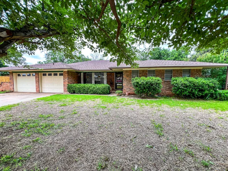 Tucked behind a canopy of beautiful shade trees, this charming brick ranch-style home offers both comfort and style. With three bedrooms and two bathrooms, the property features an attached two-car garage and a welcoming entryway adorned with custom brick pavers and newly updated wood flooring. The owners have thoughtfully transformed a former office space into a lovely formal living room or sitting area, adding to the home's inviting atmosphere. The open-concept design seamlessly connects the expansive living room-highlighted by vaulted ceilings, exposed beams, and a custom brick wood-burning fireplace-to the kitchen, breakfast nook, and dining area. The kitchen boasts stunning custom cabinetry, a newly added oversized pantry, and a large central island that is perfect for entertaining. A full laundry area is conveniently located just off the kitchen, with direct access to the garage. Two spacious guest bedrooms share a beautifully updated full bathroom complete with a dual vanity and tub-shower combo. The primary suite offers generous space, a walk-in closet, a makeup nook, and an updated ensuite bathroom. Outside, the home truly shines with a large covered back patio that stays shaded throughout the day, mature trees offering additional comfort, and a refreshing pool ready for summer enjoyment. The fully fenced backyard also includes a workshop that doubles as a third covered parking spaceideal for hobbies, storage, or additional vehicle protection.