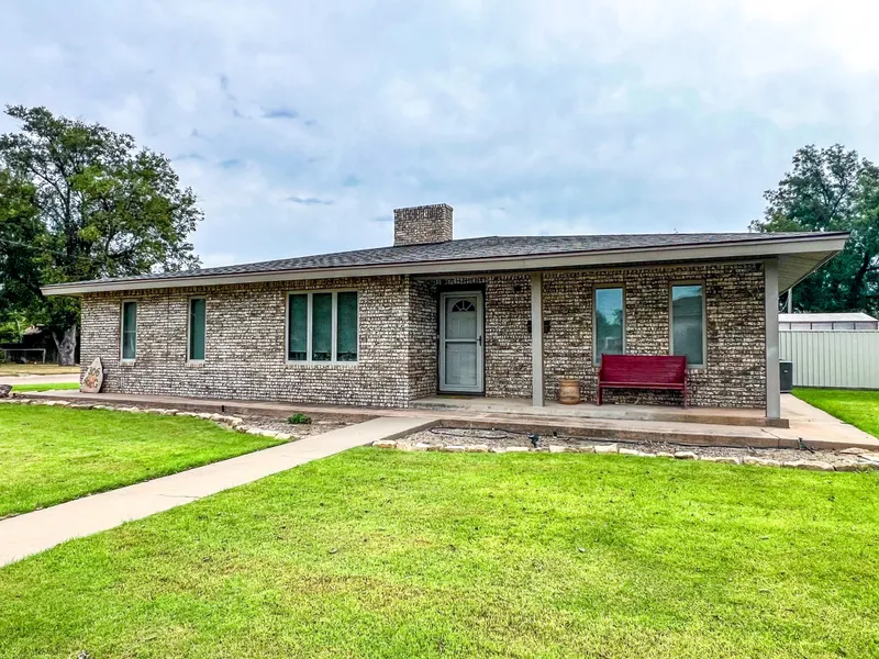 This lovely brick home sits proudly on a large corner lot in Haskell and offers charm, space, and thoughtful amenities. With a versatile three- or four-bedroom layout, the home features a split bedroom arrangement that provides privacy and convenience. The optional fourth bedroom serves perfectly as a spacious office or flex space, while two additional guest bedrooms share an oversized guest bathroom. The master suite is a true retreat, complete with a generous layout and a luxurious soaking tub. The living room showcases a cozy wood-burning stove, neutral paint colors, and flows seamlessly into the kitchen, where youll find all appliances included, tile countertops, and an inviting breakfast bar. Just off the two-car garage sits a roomy laundry area with an attached bathroom for extra convenience. Through French doors, step out to the star of the showthe expansive covered back patioperfect for family gatherings, relaxing afternoons, and everyday outdoor living. Additional exterior highlights include a private water well, new privacy fence, updated roof, new windows, greenhouse, extra carport, and well-kept landscaping that enhances the propertys curb appeal.