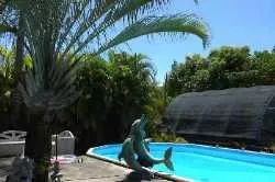 Double wide lot on sunny Kaloli Point makes this property very special. You enter the mini-estate through a wide gate and driveway that winds through the adjoining lot amid lush vegetation. Total acreage includes TMK 3-1-5-59-3 and 4. The two story house has an outstanding ocean view and is designed for flexible living with separate entrances on both floors. Two bedrooms and baths upstairs and bedroom/office space and a huge family room with wet bar below. Sellers have extensively remodeled the property for their home business expanding and doubling the size of the original house. The ground floor improvements including the 720 square foot covered lanai workshop and 320 square foot covered pool patio are permitted but no final inspections. The possibilites are fantastic for either vacation rental or home/office businesses. The outdoor covered and uncovered patio areas face the ocean with generous seating around the pool. A portable bar and spa and lovely garden plantings and this is a party waiting to happen.
