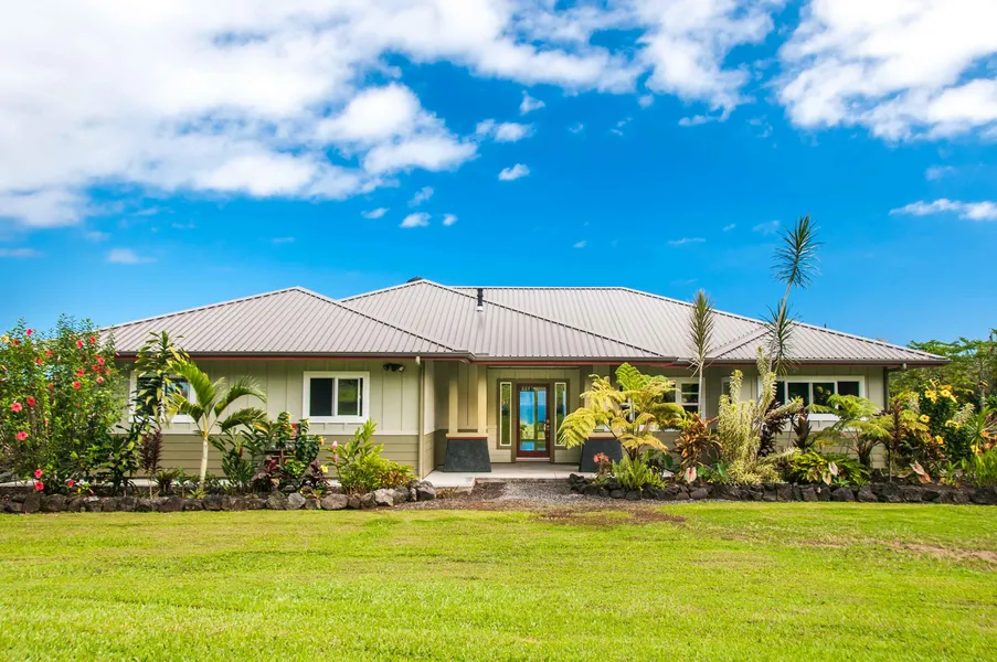 Contemporary home on 17 acres with spectacular ocean views, producing orchards, and Kawainui Stream frontage. Beautiful Onomea Bay location on Scenic Drive only minutes from downtown Hilo. This home offers the option of On-Grid or Off-Grid sustainable living. Seven acres are income producing macadamia nuts, tropical fruit trees, coconuts and raised garden beds, all on beautifully landscaped grounds. Year-round Kawainui Stream borders the north boundary of the property.