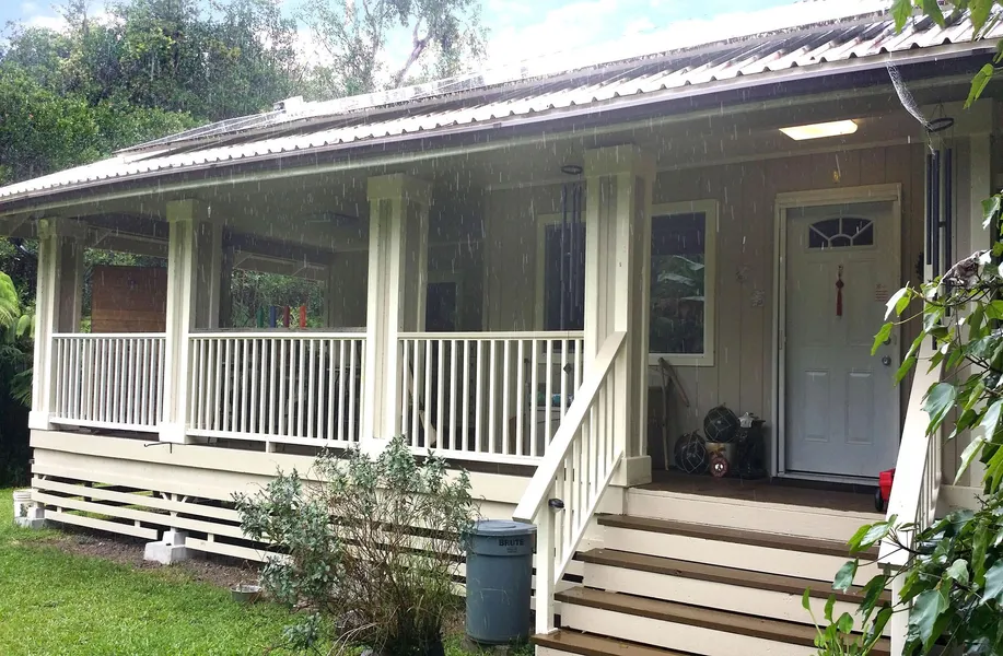Relax on the enclosed outdoor porch area overlooking the abundant flowers, fruits and vegetables. Poha, kukui nut, banana, kale, passion fruit, green beans, taro, potatoes, green rose, puakenikeni, maile, awa, red and green ti, and olena all are thrive here.