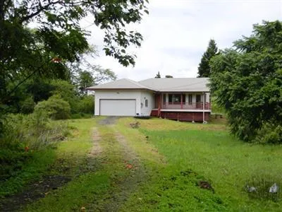 Country living in Hilo Hawaii! Tucked away in Waiakea Uka, home is on one acre of land on Ainalako Road. Set back from the road for privacy, the home sits high on the property. Waling up the front stairs, a small covered deck to the right provides a cozy sitting area, just enough for an outdoor table and couple of chairs. As you enter the front door, your eyes are drawn to the vaulted ceilings and open floor plan. Great space with sliders leading to the back of the home as well as that cozy front deck. The kitchen has lots of counter and cabinet space with a breakfast bar to boot. A kitchen that was designed for efficiency as well as entertaining. Down the hallway you come across 2 bedrooms. Both are ample sized with large windows which bring in lots of Hawaiian sunshine. At the end of the hallway is the master bedroom. Large windows in this room also bring in the natural sun...