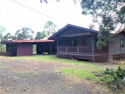 Amazing opportunity! This single story cedar home is situated on a full acre of stunning Hawaiian forest land which provides all the privacy and space you have ever wished for. This 1990 home has tall, open-beam vaulted ceilings, wood siding, laminate and tile flooring, an excellent floor-plan with kitchen, family room and covered lanai open to each other. The Master bedroom has 3 closets and a private bath while the two additional rooms and bathroom are located on the opposite side of the home. Enter the property by way of a large circular driveway connects two sides of this corner lot while the carport offers extra storage in the connected storage area.
