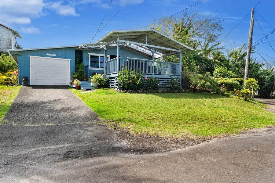 Situated at the end of a quiet street in the heart of Honokaa town this beautifully renovated 3 bedroom, 2 bathroom home makes the best of indoor/outdoor living. Perched on a small hill the stunning Pacific Ocean views are visible from the over-sized lanai, kitchen, living and dining rooms.