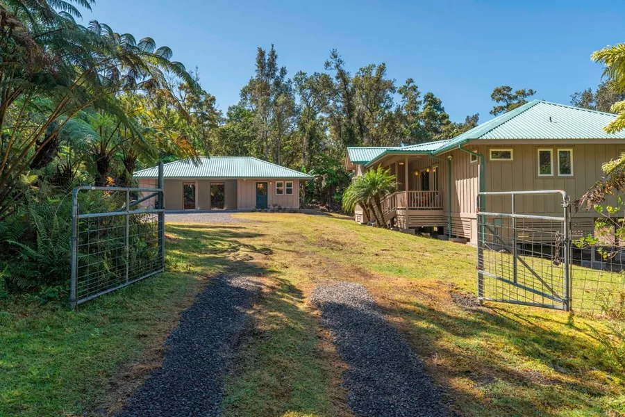 Welcome to this beautifully maintained property not too far up Kaloko Drive. This property is in a five lot private subdivision within Kaloko Mauka Subdivision, the subdivision entry is gated for privacy, the building lot is also gated and fenced with hog wire. There are several fruit trees on the property that also has low maintenance landscaping. The garage is oversized with a bonus area and bath. The entry into the house is dramatic with the open beam ceiling, bamboo flooring a propane fireplace and a free flowing floor plan. All countertops are solid granite and all cabinetry and appliances have been well maintained. The house has views of the forest from all rooms