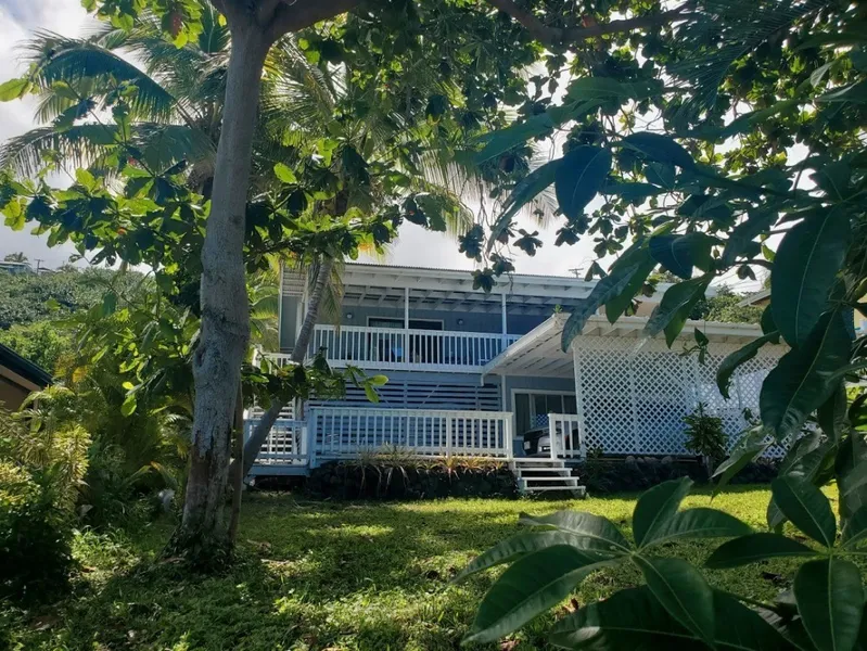 Hawaiiana open & airy home with open beam ceilings & large lanai. Open beam ceilings in all rooms in the 2 bedroom, 1 bathroom upstairs. Separate 1 bedroom, 1 bathroom downstairs with large open lanai & carport is the perfect set up for guest or possible rental. Fresh new paint. Ceiling fans throughout. New counter tops, light fixtures. Very clean, neat home. Nice flat useable yard. Watch the whales, dolphins & sunsets from your large lanai. 1 block to the trail park or just 3 minutes to a great beach or beach park with snorkeling, swimming, kayaking, diving, fishing. Approximately 15 minutes to another great sandy beach. Approximately 20 minutes to Kealakekua Ranch Center & Sunday Green Market. Approximately 25 minute to Kona Community Hospital. Great views & value make this a must see home! More photos to come in July after tenants move out.