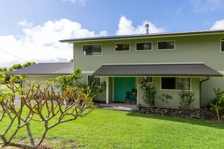 Very livable family home in highly desirable Waimea Homesteads. Nestled into this conveniently walkable neighborhood, you are right in town. This refreshed and remodeled family home has 2 stories, with the open living area (Living, Dining, Kitchen) and Primary Bedroom on the first floor while the additional and newly carpeted 3 bedrooms and 2 baths are upstairs. The Living area is bright with large windows that overlook Mauna Kea and has cathedral ceilings. The new fireplace is perfect for those cozy Kamuela evenings. The acacia kitchen countertops and freshly painted kitchen cabinets invite you to entertain. The deck is covered allowing for all weather outdoor dining and it flows onto a large grassy backyard with fruit trees (tangerine, Meyer lemon, lime, avo, banana and lilikoi.