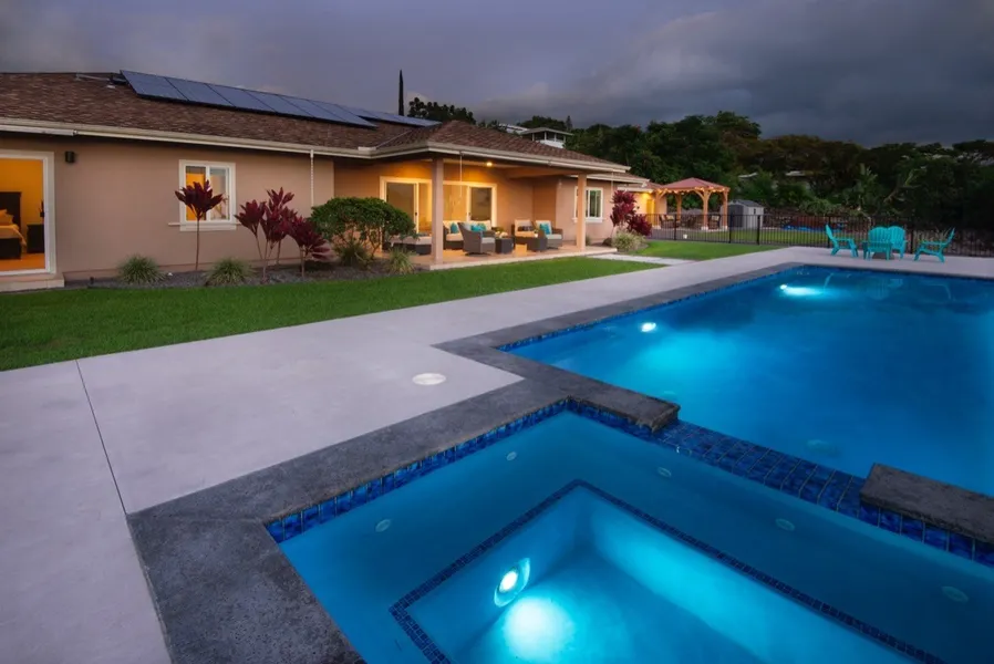 Secluded in the desirable neighborhood of Hualalai Vistas, rests the luxury Hawai'i property you've been looking for.brbrThis fully furnished, turn-key property accommodates anyone's lifestyle. Located at a Goldilocks zone of 1200 feet elevation, seclusion is felt upon entering the driveway. brWhile inside, your attention is drawn to the beaming blue pacific ocean. The view is complemented by the sparkling salt-water gunite pool with a connected spa-hot tub.brEnjoy 24-owned solar panels with a Tesla battery, a walking/jogging/running trail around your property and plenty of entertaining space.brbrThis elegant home sits on over an acre of flat terrain with lilikoi, avocado, pineapple, banana, orange, lime, soursop and dwarf avocado trees.brThis single level home has three bedrooms, two baths, a spacious kitchen, granite counter-tops and a separate laundry room.brItalian porcelain tiles ca...