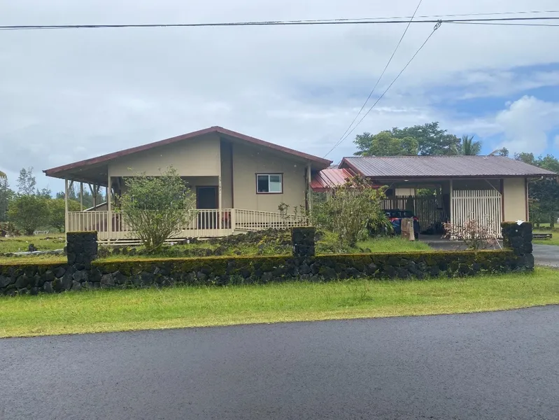 This is a great set up and a perfect home for a large family, extended family or rental. The main home is a 1 bedroom 1 full bath, living room and kitchen. Detached from the main home are 3 additional bedrooms, each with their own entrance. One of the rooms is an additional master bedroom with a full bath. The other 2 bedrooms have closets, and the 3rd full bath is in the carport. For rental purposes the 2 bedrooms without bathrooms share the carport bathroom and they all share the living room and kitchen. There is lots of space for everyone. The master bedroom in the main house has air-conditioning and a large walk-in shower. The lanai goes around 2 sides of the house and is accessible from the master bedroom. The huge yard is nice and grassy, well established and all cleared. With a Nice rock wall fronting the property. Great home Great price. 4-bedroom, 3 full baths, carport on an acr...