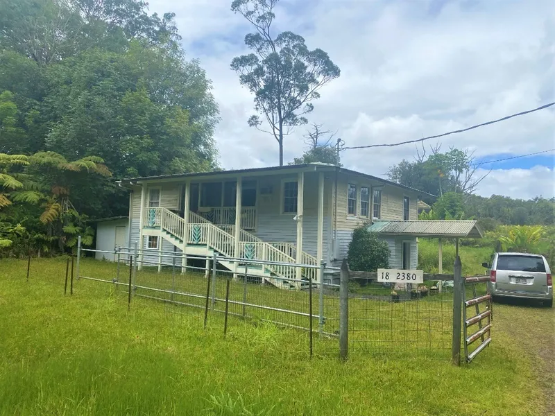 Endless possibilities with this 1940 home right on Hwy 11 by the 19mm, across from pole 119. Originally a 4-bedroom 1 bath home, seller had the idea of making this place into a dentist office. The home has many updates and changes. Upstairs is a great lanai with lots of room to sit outside and relax. The inside has a big receptionist desk as you first enter with large open area behind it. Take out the desk and turn it back into a living room or leave it there and start a business. There is also a bathroom in the front. 3 Bedrooms have been converted into offices, but they can be changed back. Get creative and see what kind of business you can possibly run out of the home. There is a full kitchen and a full bathroom and bedroom that is on the other side of the home with its own entrance into the home and lanai. You could rent this out as an apartment since it is lockable from the main hom...