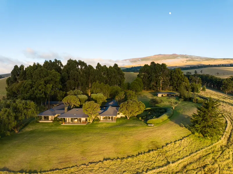 Nestled on the slopes of Mauna Kea, tucked behind the protection of the pu’u, lies a magnificent 20 acre legacy estate. Surrounded by 30 year old established trees that provide refuge for Hawaii’s native songbirds, the 4348 sf, 3 Bedroom, 2.5 Bath Main house and the approx 733 sf detached guest suite, has unobstructed vistas toward Mauna Loa and Hualalai and commanding views of the endless ocean below. As the highest point inside the Ranch, you feel on top of the world!