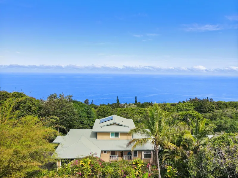 KAOHE RANCH ESTATES-5 ACRES COASTLINE VIEWS.3 BED,4 BATH STUDIO WORKSHOP GARAGE. Turnkey furnished-move in ready.brPrivate 5 acre South Kona Coffee Estate at perfect elevation with cool breezes for you. Located in the Kona Coffee belt w/approximately 2,000 coffee trees. Lush tropical foliage plus fruit trees, veggie garden. Rock walls & electric fence.brAttractive private driveway up to a green lawn & huge mature trees, 3 Monkey Pod Trees, Palms, Plumerias & Hibiscus.brEnter through a glass front door to your 3 bedrooms, 2.5 bathrooms in the main house with high ceilings, wood floors.brPocket doors open to a 843 sf tiled lanai with panoramic ocean views for your al fresco dining & outdoor living. Kitchen with a garden window for your herbs, granite counters & breakfast bar, 5 burner gas stovetop.brMain bedroom with high ceilings opens onto the lanai with big blue ocean views.brLarge b...