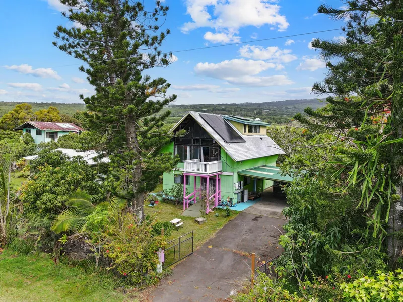 Experience the perfect blend of comfort, sustainability and natural beauty in this wonderful Naalehu home. Built in 1972 this home combines vintage charm with modern conveniences. Boasting a generous square footage, this residence captures the essence of colorful living with its bright green exterior and each room painted in a distinct, lively color. Abundant natural light floods the space, highlighting the homes dynamic atmosphere.brbrThis property is not only a visual delight, but also a practical investment. The lower level is ideally configured for use as a rental unit, providing a potential income stream or extra space for visiting guests. Newly installed photovoltaic panels offer energy efficiency and sustainability, reducing your carbon footprint while saving on electricity bills. brbrOther Property Highlights:br-Lava zone 6br-County utilitiesbr-New Leased PV (Sunrun; 25 Panels, 1...