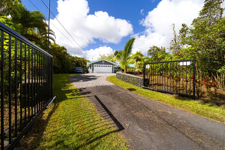 Welcome to your new island oasis on 23rd Ave., in the desirable Kaloli Drive of Hawaiian Paradise Park. This charming 3bedroom, 2bath home offers over 2,000+ square feet under roof, and two enclosed lanais adding approximately another 370sqft., designed to maximize the serene Hawaiian lifestyle. As you drive onto the property, you'll be greeted by the luscious greenery and beautiful landscaping. Through the front door you'll notice a bright and airy atmosphere; perfect for both relaxing and/or entertaining. The living area and kitchen feature an additional lanai area, adding space and options to enjoy your meals and entertain guests. All bedrooms are located down the hallway left of the living area, and to the right you have an extra room; currently utilized as an office, boasting a spacious layout. The home also includes another lanai right off of the primary suite, perfect for enjoying your morning coffee while enjoying the serenity. This home provides the perfect balance of privacy and convenience. Hawaiian Paradise Park is known for its lush landscapes, making it a wonderful place to call home and just minutes away from Keaau Shopping center where you'll find restaurants, eateries, CVS and hardware stores. Additional property features: UV water filtration system Remote controlled solar powered gate Leased - PV Solar Panels Pond Landscaped Rock wall Partially fenced Security system - Buyer to connect at their own expense Fruit trees: Guava Lilikoi (haven't seen fruition) Pineapple coffee Lemon Sour sap Orange Papaya Avocado **PLEASE TAKE A LOOK AT THE VIDEO** - Public records sqft. differ from actual. Buyers to verify all information deemed important to their purchase.