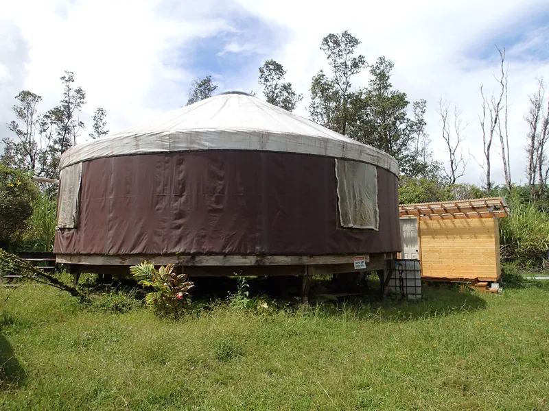 If your looking for an alternative life style, this may be the one for you. Located in Ainaloa Subdivision in lava hazard zone 3, on a 12000 sq, ft lot, this property boasts a very spacious 30' in diameter YURT. It has 833 sq.ft. of living area, two doors, four windows and a tinted dome skylight. Included is a refurbished clawfoot tub, pedastal sink, composting toilet, 4 burner gas stove, on demand hot water heater & 5 gallon propane tank. There is a circular driveway and the yurt is positioned in the back as to add privacy. The property is graced with lovely Ohia trees and ferns. brPahoa town is just a 8 to 10 minute drive to where you can find the new Puna Kai shopping center, a Sunday farmers market and other ammenities.