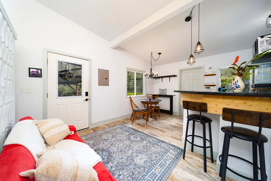 PLEASE SEE THE VIDEO OF THIS PROPERTY (ADJOINING PROPERTY IS ALSO FEATURED BUT NOT INCLUDED WITH THIS SALE! Bring your toothbrush to this move-in ready 3 bedroom/2 bathroom home featuring designer touches throughout! The light and airy interior opens to a large covered front lanai for all-season enjoyment, and convenient attached covered carport. The lush, yet easily-maintained landscaping includes 7 varieties of fruiting trees, ohia trees, herb and flower gardens, plenty of outside seating and green spaces, placing the spotlight on entertaining family and friends! FEATURES: Open concept kitchen, living and dining area 3 bedrooms and 2 bathrooms Vaulted Ceilings Interior laundry and off-grid systems room Chicken Coop Outside fire pit with seating Covered lanai and carport 770 sq ft of living space Un-permitted Renovations completed in 2021 LOOKING FOR RENTAL INCOME? ~The property was rec...