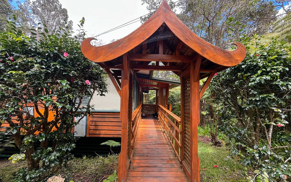 "Volcano Places", once a popular hosted BnB offers opportunity for the savvy buyer. Custom built by a renowned local craftsman, these custom wood & glass cottages fit beautifully in the Volcano rainforest. Nestled on an acre, they are perfect for long term rental, multigenerational living, retreats or hosted BnB, you decide!